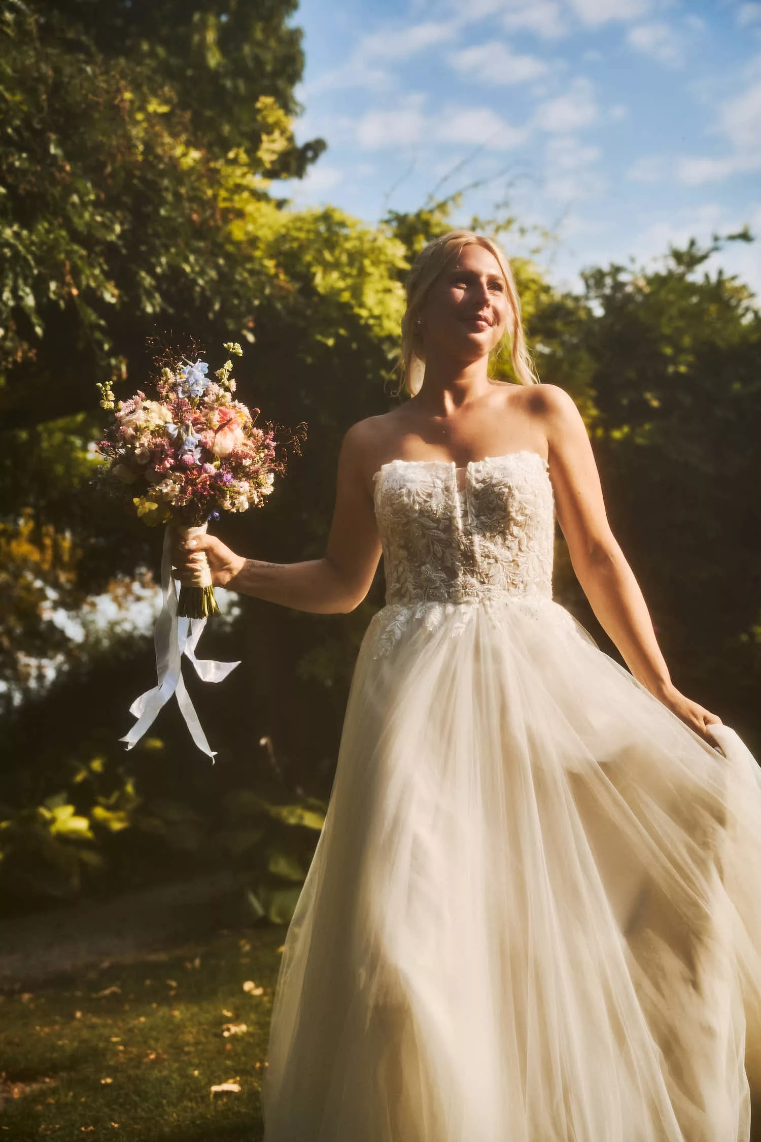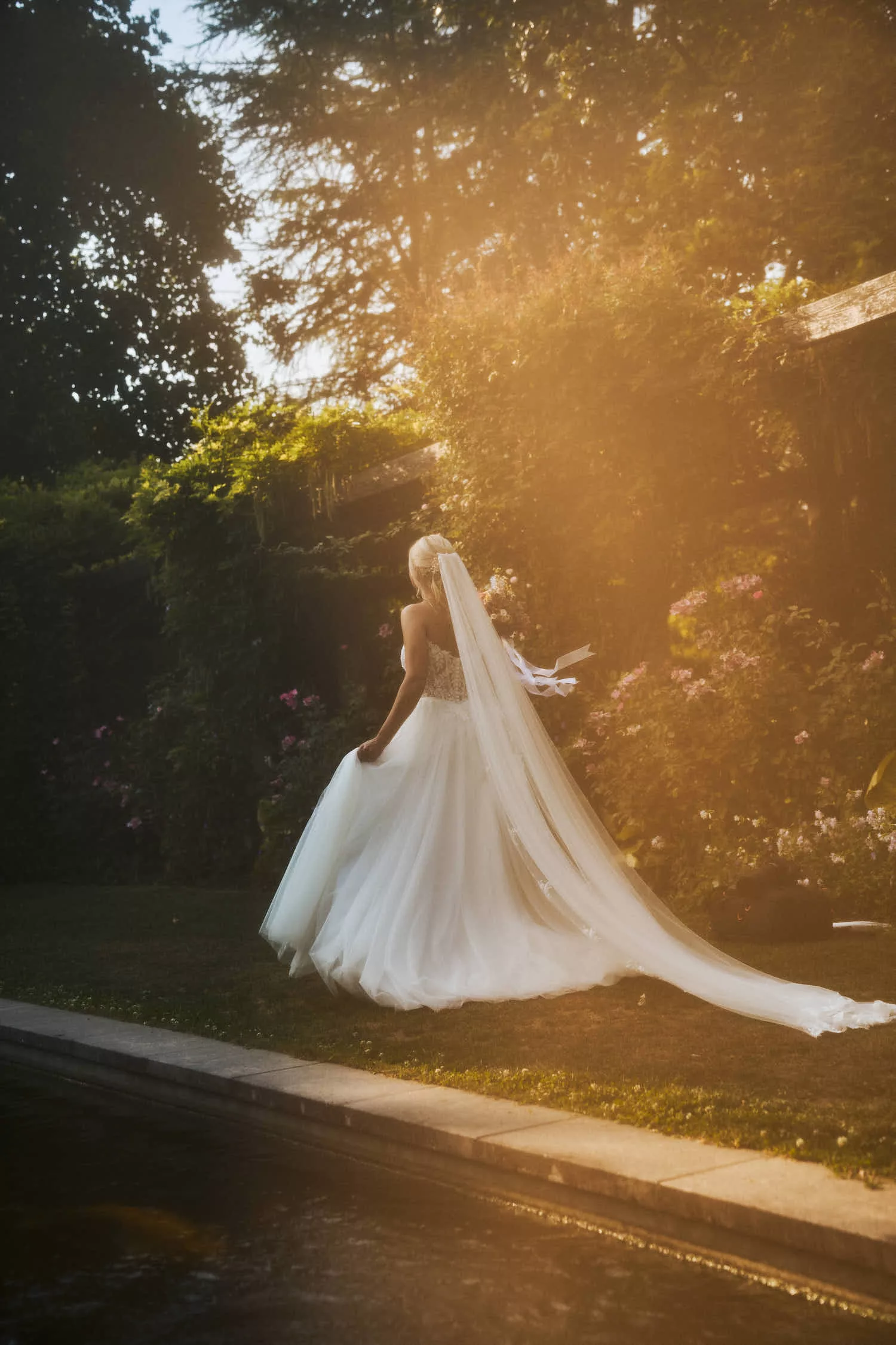 Ob zwischen blühenden Blumen, auf kleinen Wegen oder vor der stilvollen Kulisse des Hauses – überall entstehen Bilder mit einer natürlichen Leichtigkeit und zeitlosen Eleganz.